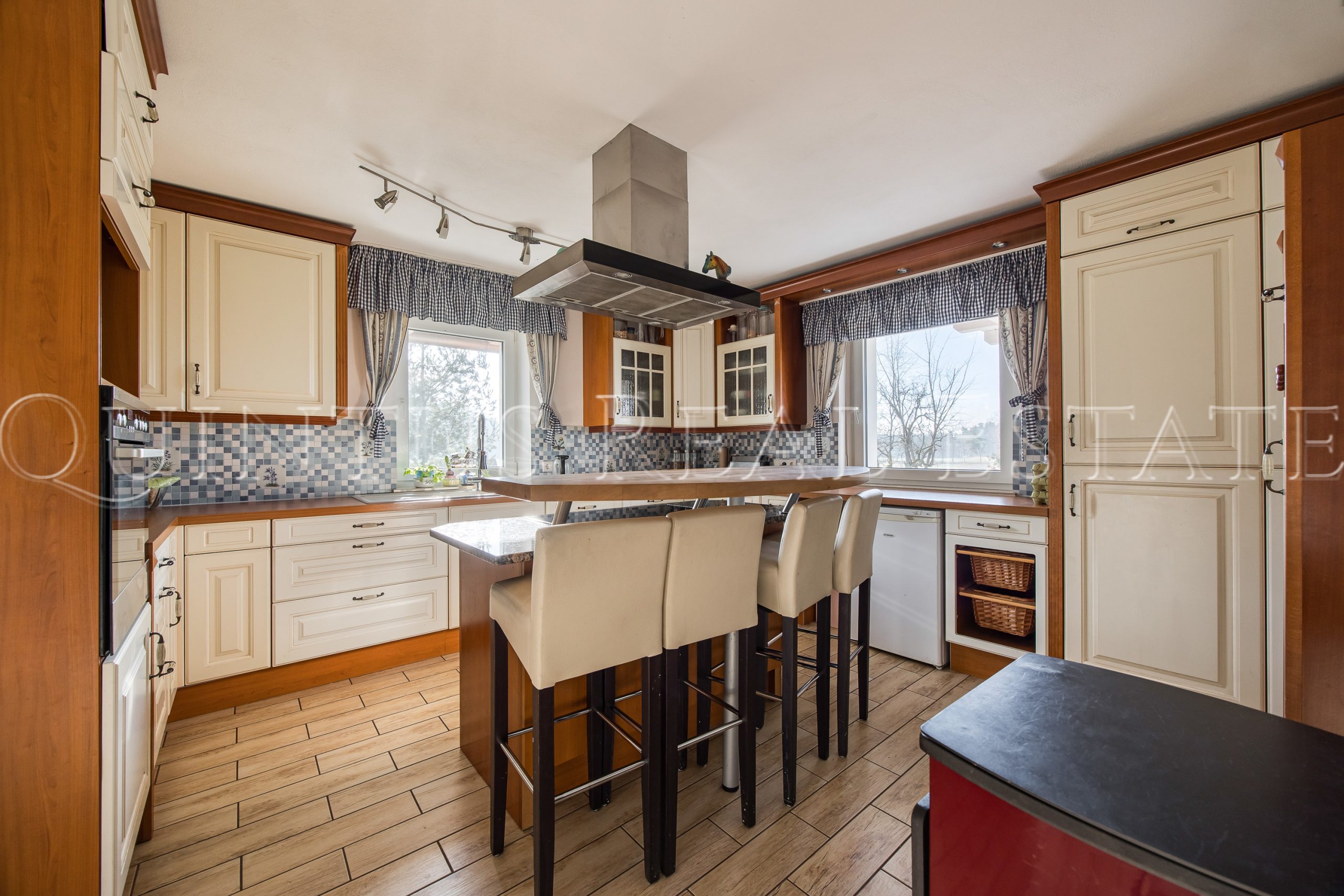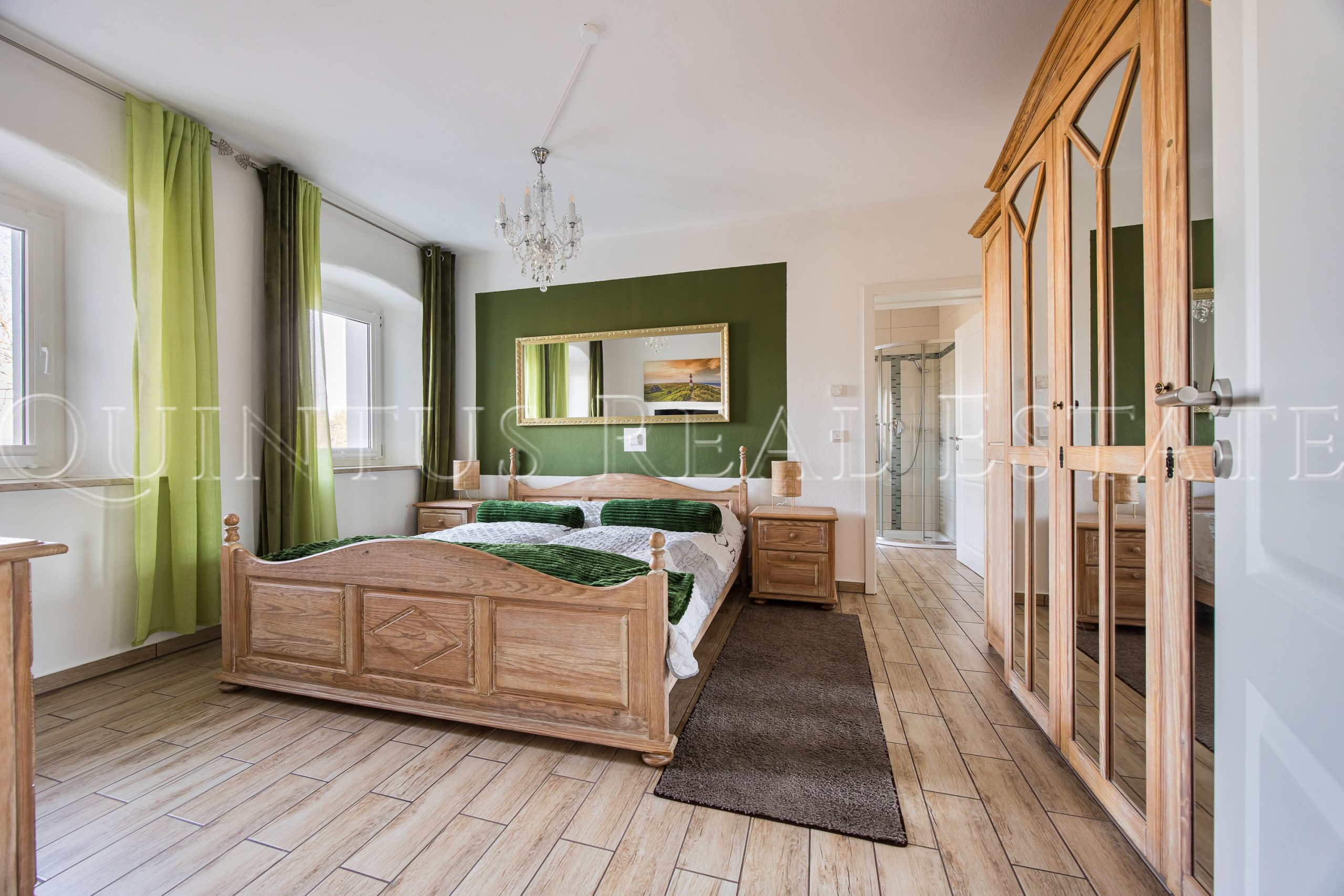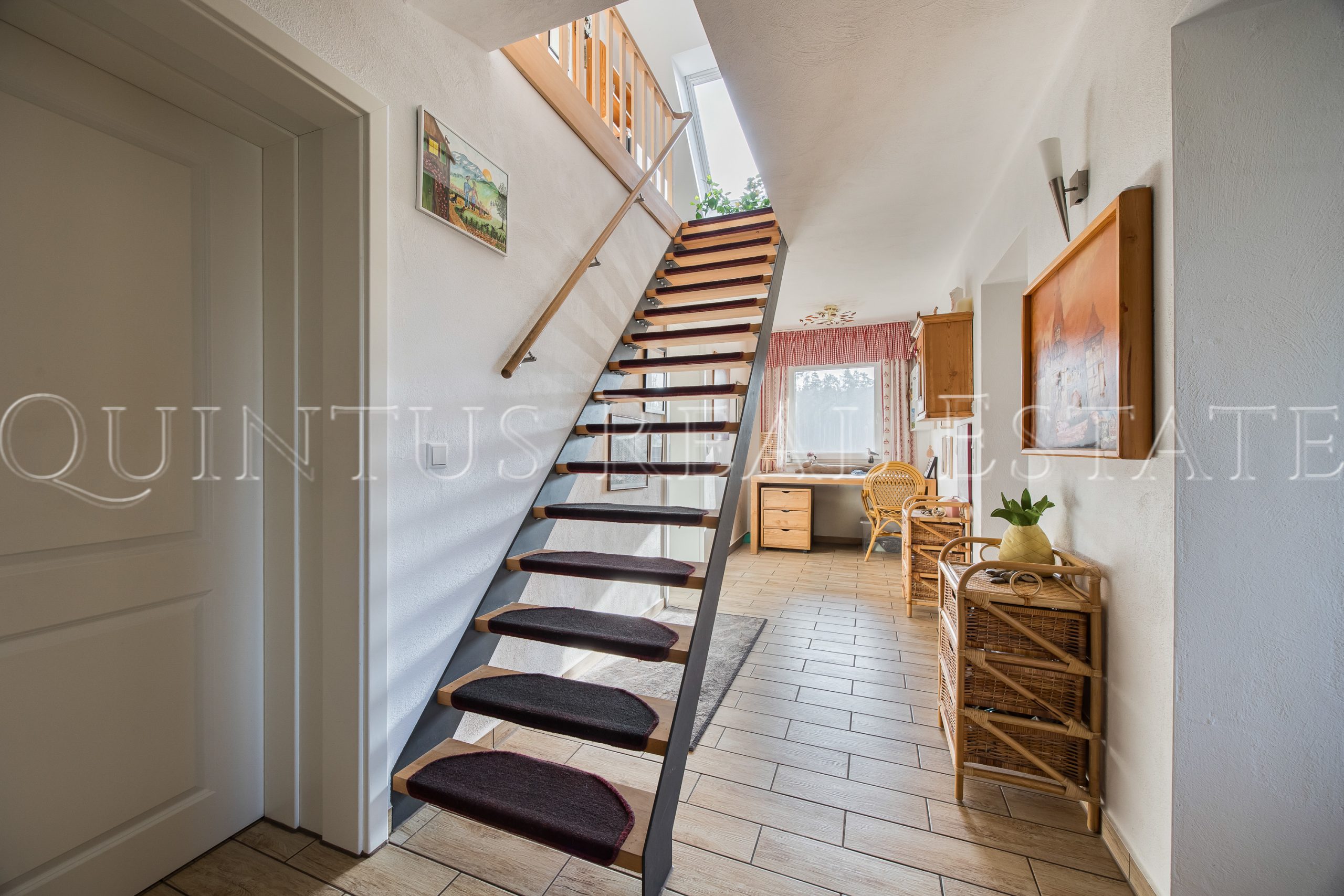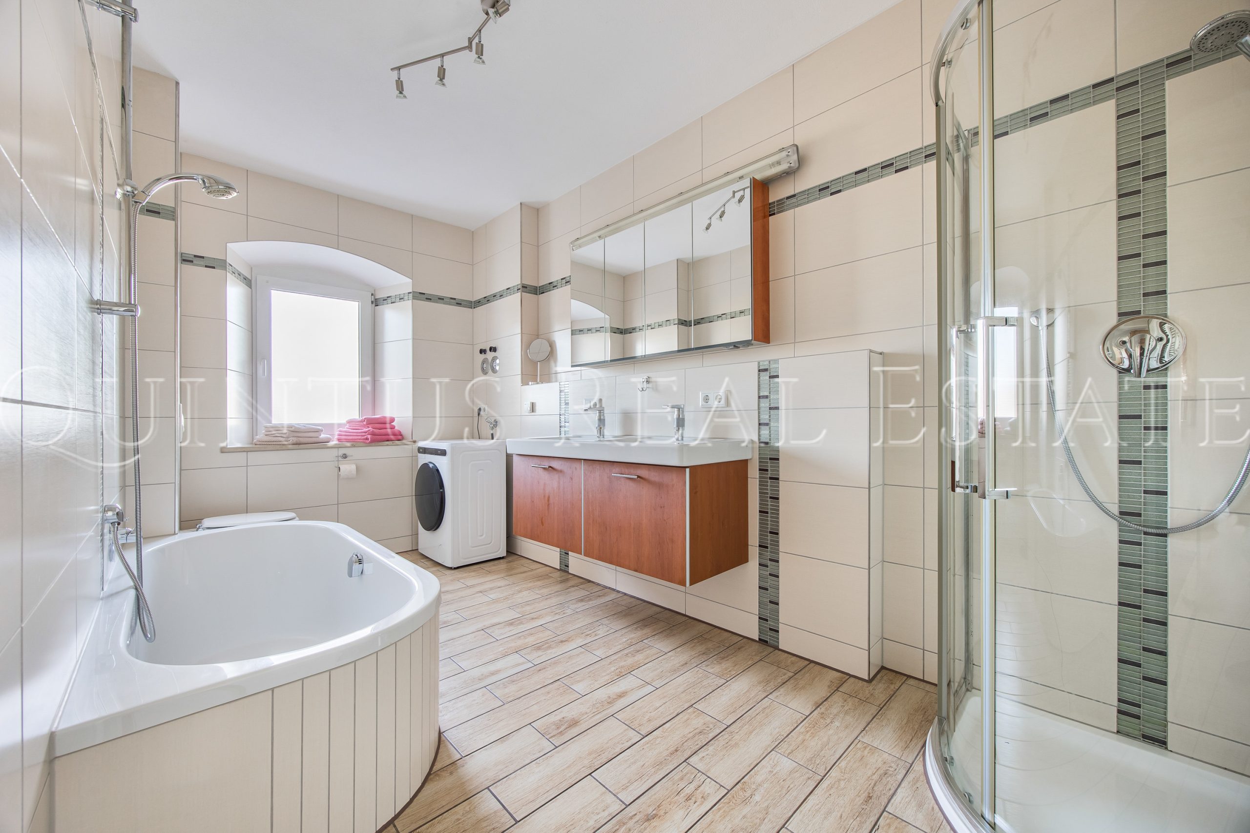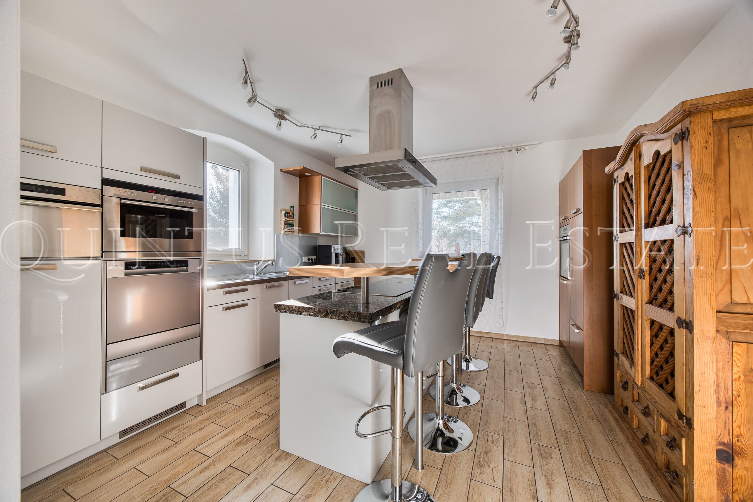 Das Wohnhaus wurde zwischen 2012 – 2016 umfassend saniert und überzeugt durch eine massive und gut gedämmte Bauweise sowie eine stilvolle Fassade im Schwedenstil. Die rund 384 m² Wohnfläche verteilen sich auf zwei Einheiten bzw. drei Etagen. Insgesamt bietet das Haus 7 Schlafzimmer mit jeweils eigenem Badezimmer, zwei hochwertig und voll ausgestattete Einbauküchen, zwei Wohn- bzw. Esszimmer, zwei Balkone sowie eine Terrasse/Freisitz. Hochwertige Holzoptik-Fliesen und Fußbodenheizung in allen Räumen des Hauses unterstreichen dabei den Wohnkomfort. Die integrierte Gewerbeeinheit mit separatem Eingang und sanitären Anlagen bietet vielseitige Nutzungsmöglichkeiten – von Praxis, Büro oder Atelier bis hin zur Einliegerwohnung. Zudem besteht eine Ausbaureserve im Dachgeschoss für zusätzlichen Wohn- oder Gewerberaum.