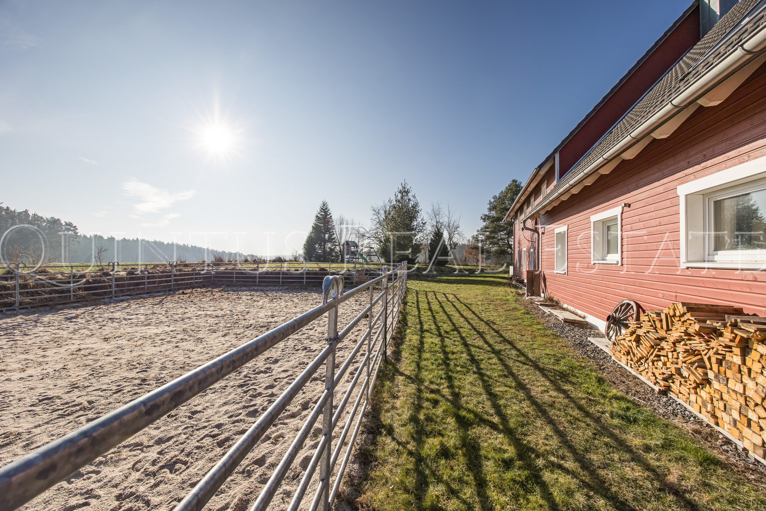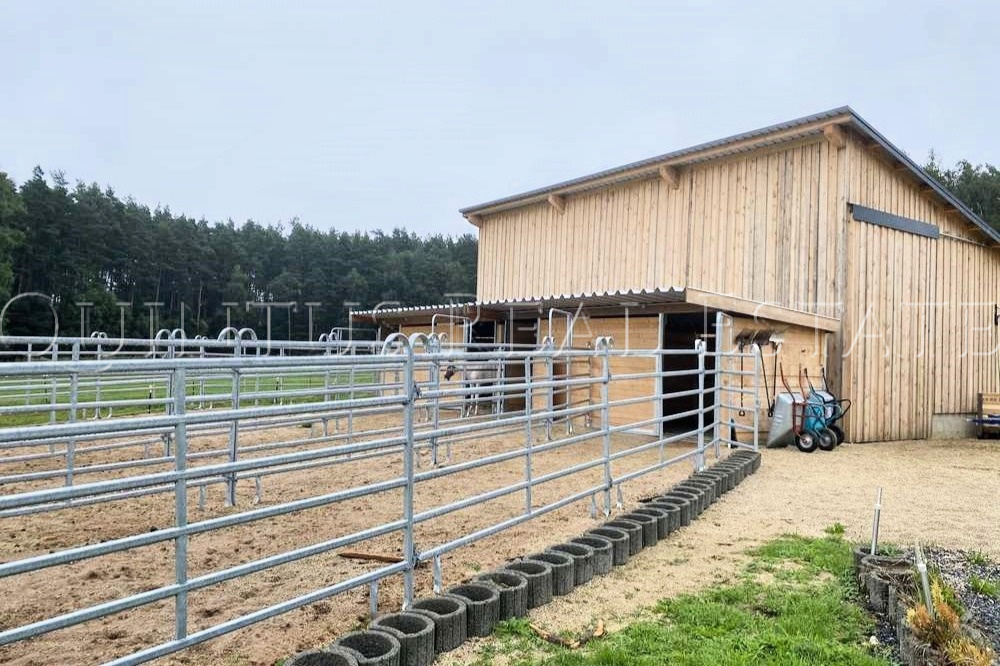 Das Grundstück ist optimal für die Pferdehaltung ausgestattet und bietet eine durchdachte Infrastruktur. Die moderne Reitanlage verfügt über Wasser, Strom und beheizte Getränkebecken, ebenso wie die drei mobilen Weideboxen für jeweils zwei Pferde, die zusätzlich mit Licht und Paddock-Paneelen ausgestattet sind. Eine genehmigte Scheune für Pferdehaltung und Mistplatz ist bereits vorhanden. Direkt angrenzend liegt eine 6.383 m² große Pachtkoppel, ergänzt durch weitere 16.200 m² Pachtflächen, die zusätzlichen Auslauf und Weideflächen bieten. Ein Pferdewaschplatz ist vorhanden, zudem besteht eine Genehmigung für den Bau einer weiteren Scheune