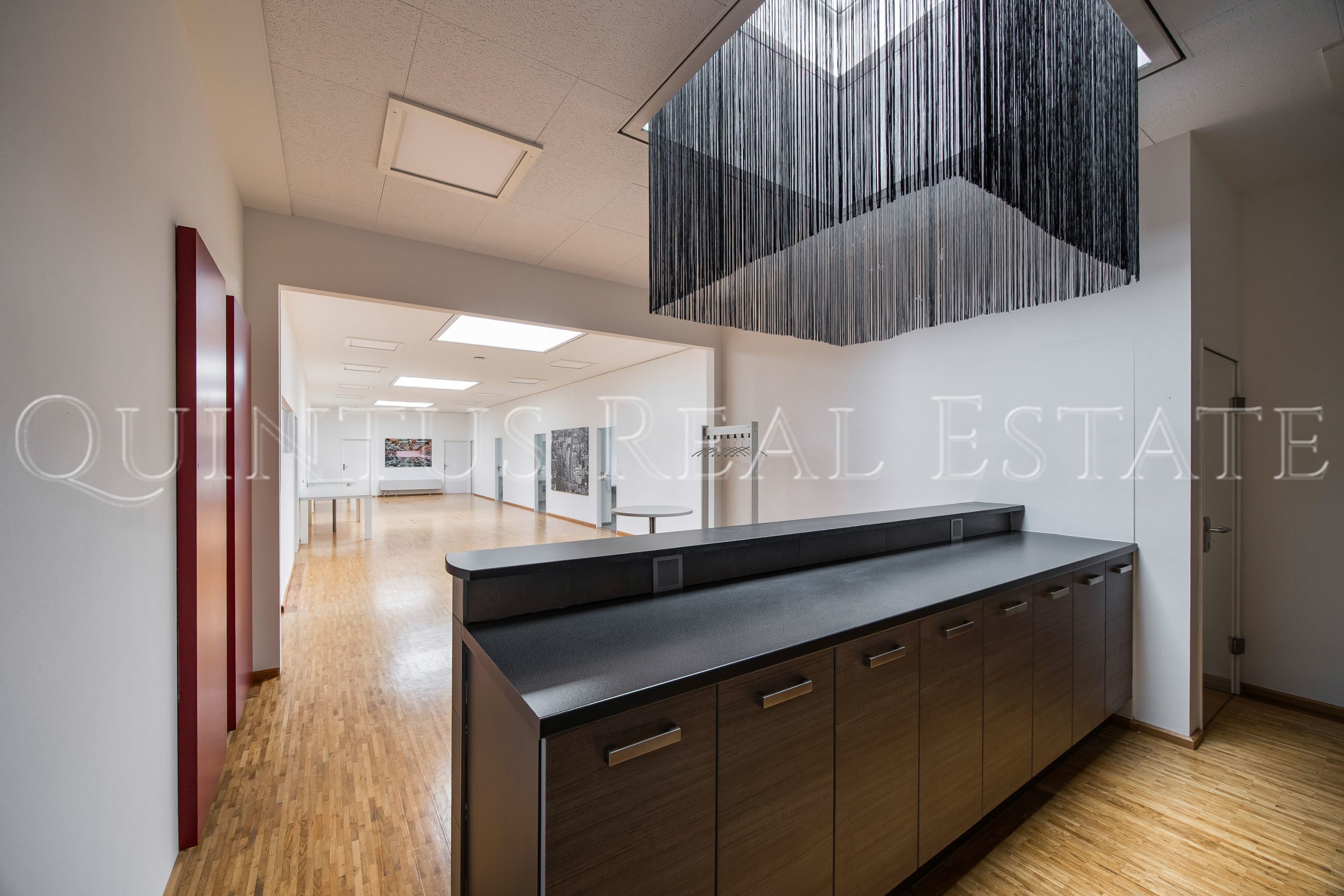 Auch das Kellergeschoss bietet mit weiteren etwa 214 Quadratmetern, einer zehn Meter breiten Fensterfront im Souterrain, Küche und Nebenräumen vielseitige Optionen. Es kann als ergänzender Geschäftsbereich oder separat nutzbare Einheit dienen.